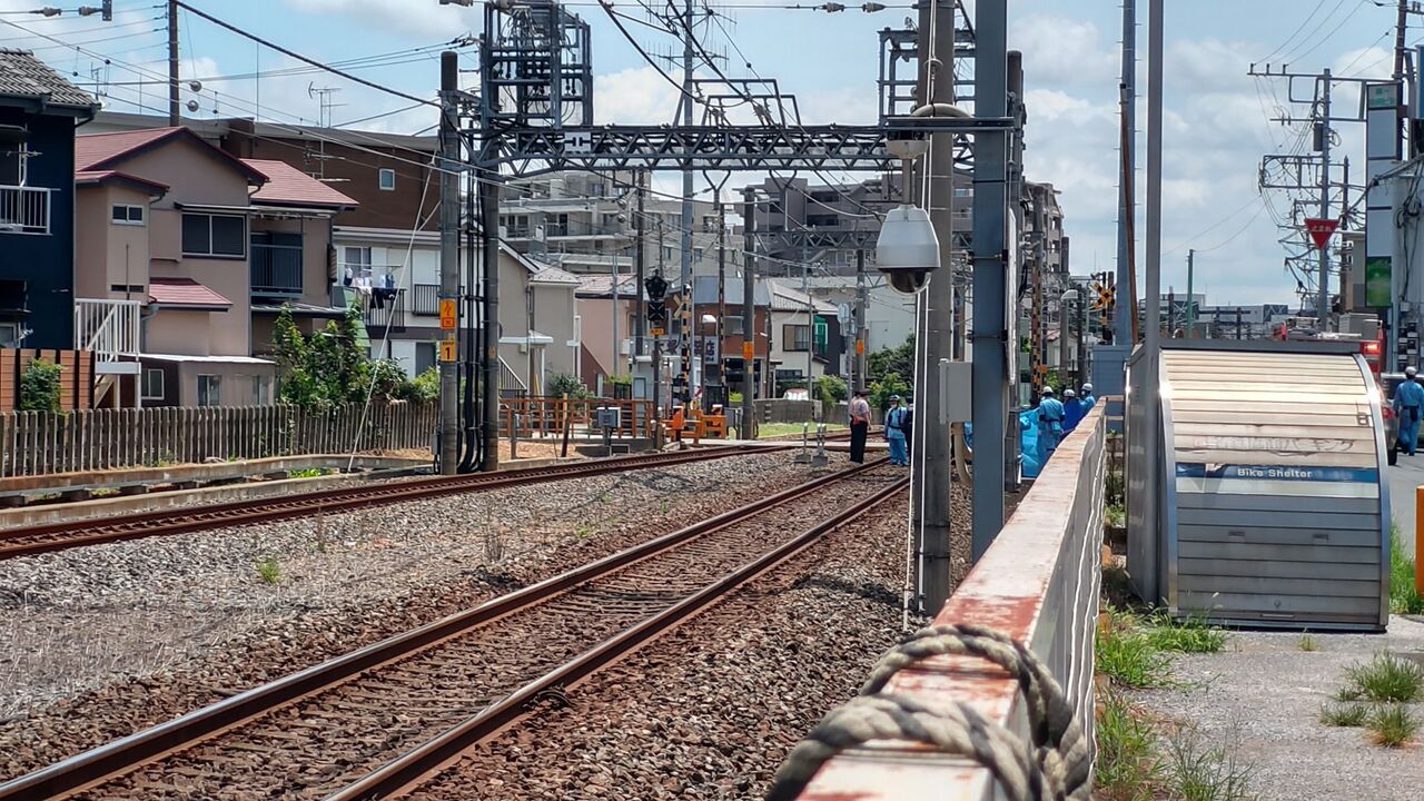【現場の状況】『踏切で作業員がブルーシート持ってる』#新京成線 高根木戸駅〜北習志野駅で人身事故 #京成千葉線 など遅延8月1日 #新京成