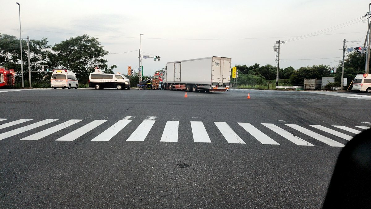 『埼玉122号線白岡菖蒲ICの交差点で衝突事故してます』