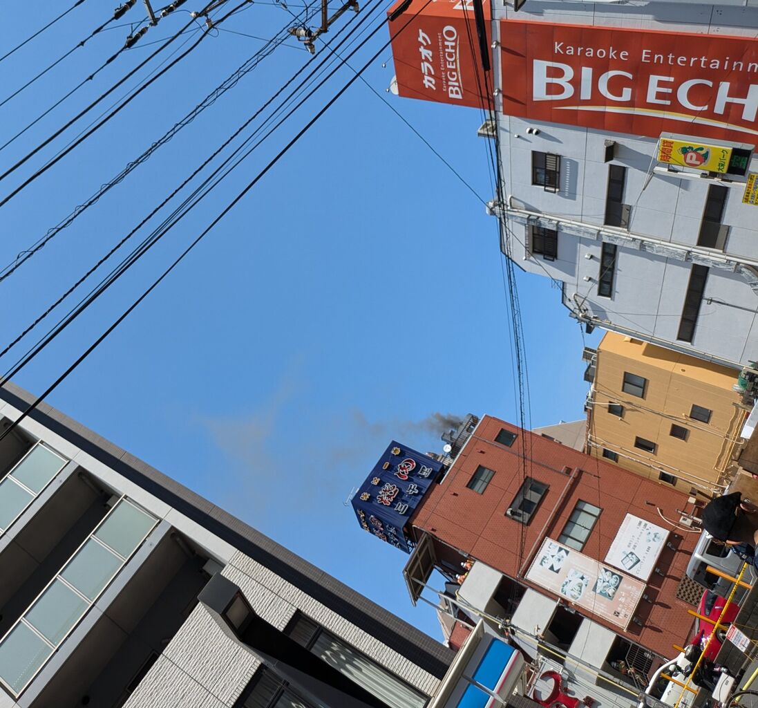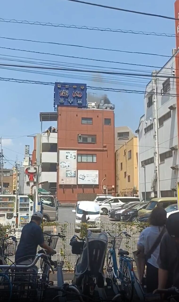【火事情報】東京都江東区亀戸5丁目 #総武線 亀戸駅北側 焼肉店ビル建物から黒煙あがる火災8月4日 #江東区 #亀戸 #火災
