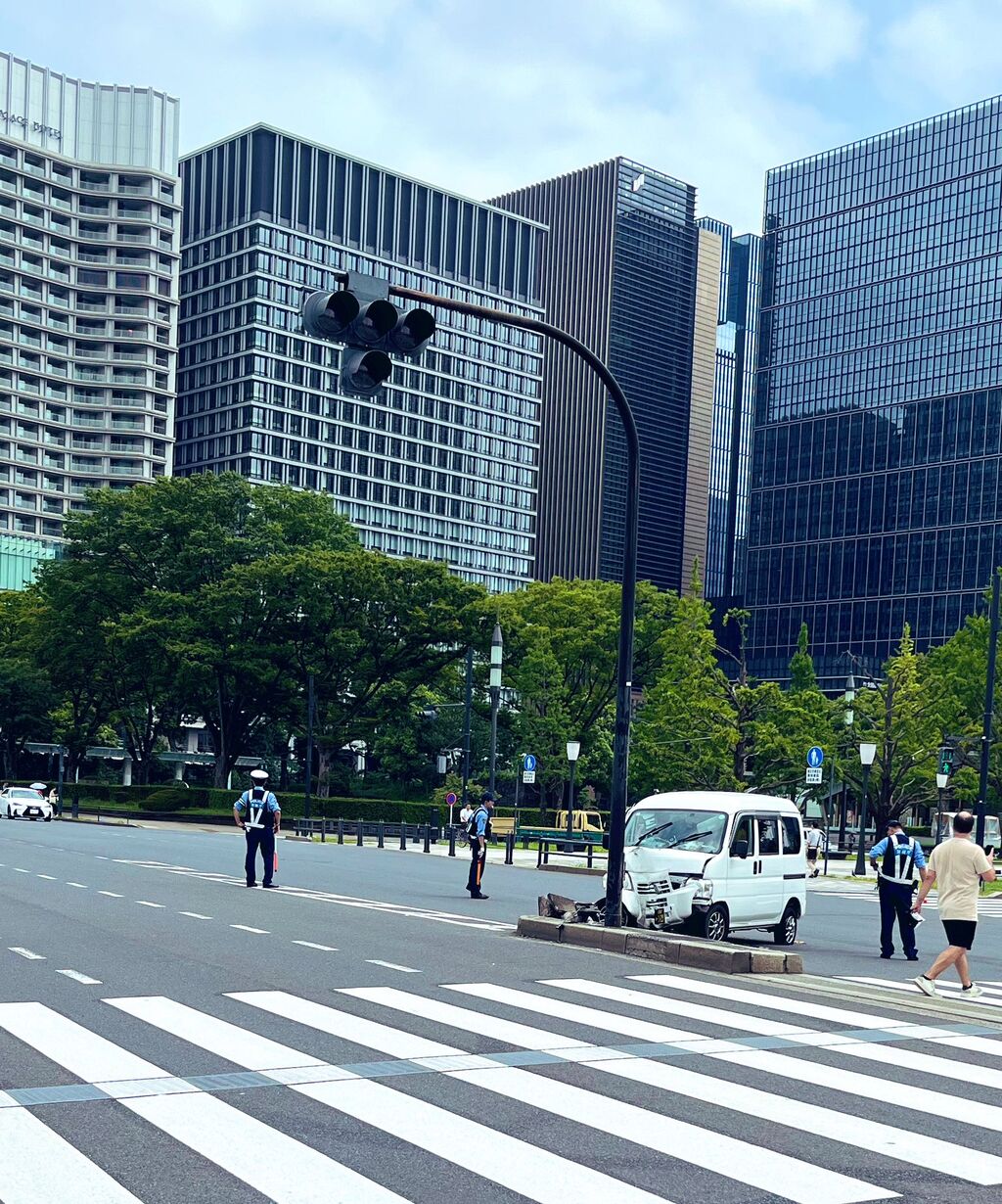 朝から皇居前で事故ってて草