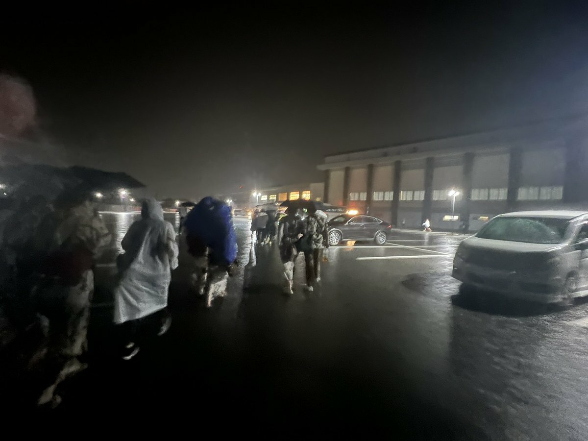 『身延線止まって再開の目処立たず、町の体育館に避難してます😱😱😱』