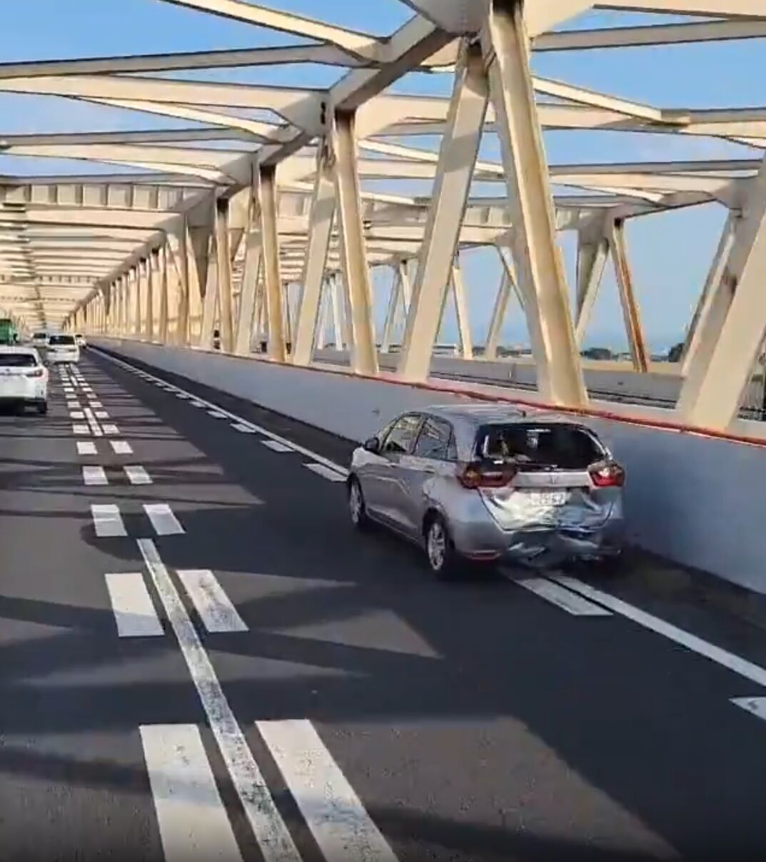羽生から救急車入ってきた!?と思ったら館林までの間の橋?みたいなとこで事故。しかも、追い越し車線。バイクが車の後ろにで突っ込んだらしくて車ベコォだった。渋滞の始まり側だったから早めに抜けれた。みんなご安全に。 pic.twitter.com/YJFiOcQrB5