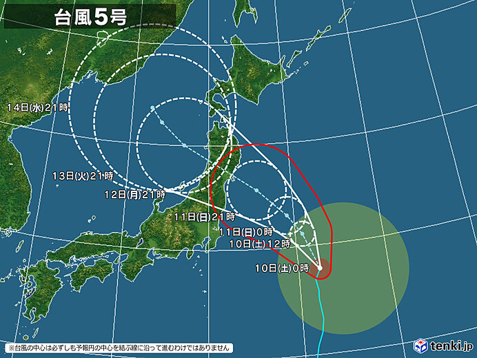 台風5号は12日(月)頃に東北地方へ上陸する可能性があります。今回の台風は岩手県岩泉町を中心に甚大な被害をもたらした8年前(2016年)の台風10号に進路が似ています。岩手県沿岸では8年前を上回る記録的な大雨となる恐れがあり、河川の氾濫や土砂災害に厳重な警戒が必要です。また、台風の進路によっては周辺地域でも大雨となる可能性があるため、今後の最新の情報をこまめに確認しつつ、避難等は雨が強まる前の10日(土)までに行うようにして下さい。