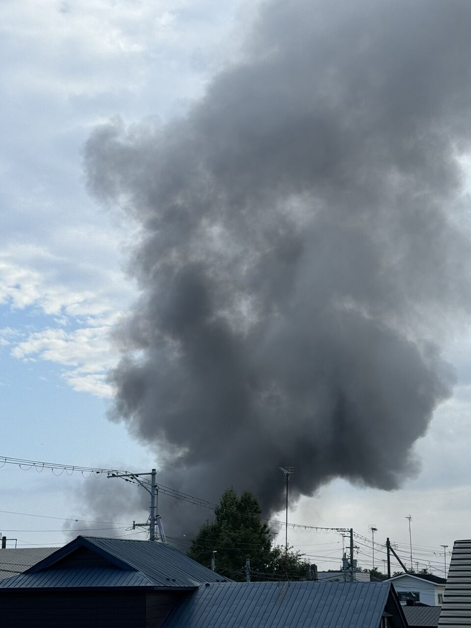 【火事情報】北海道白老郡白老町高砂町3丁目 白老駅南西付近 木材工場から煙あがる火災8月10日 #北海道 #白老町 #火災