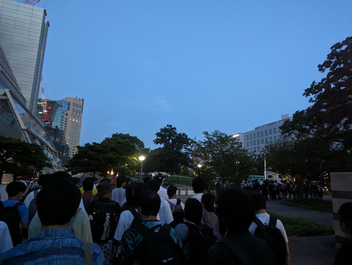 まあまだ並べんからホテル付近で集まってる人とビッグサイト向かってる人の2択かな?