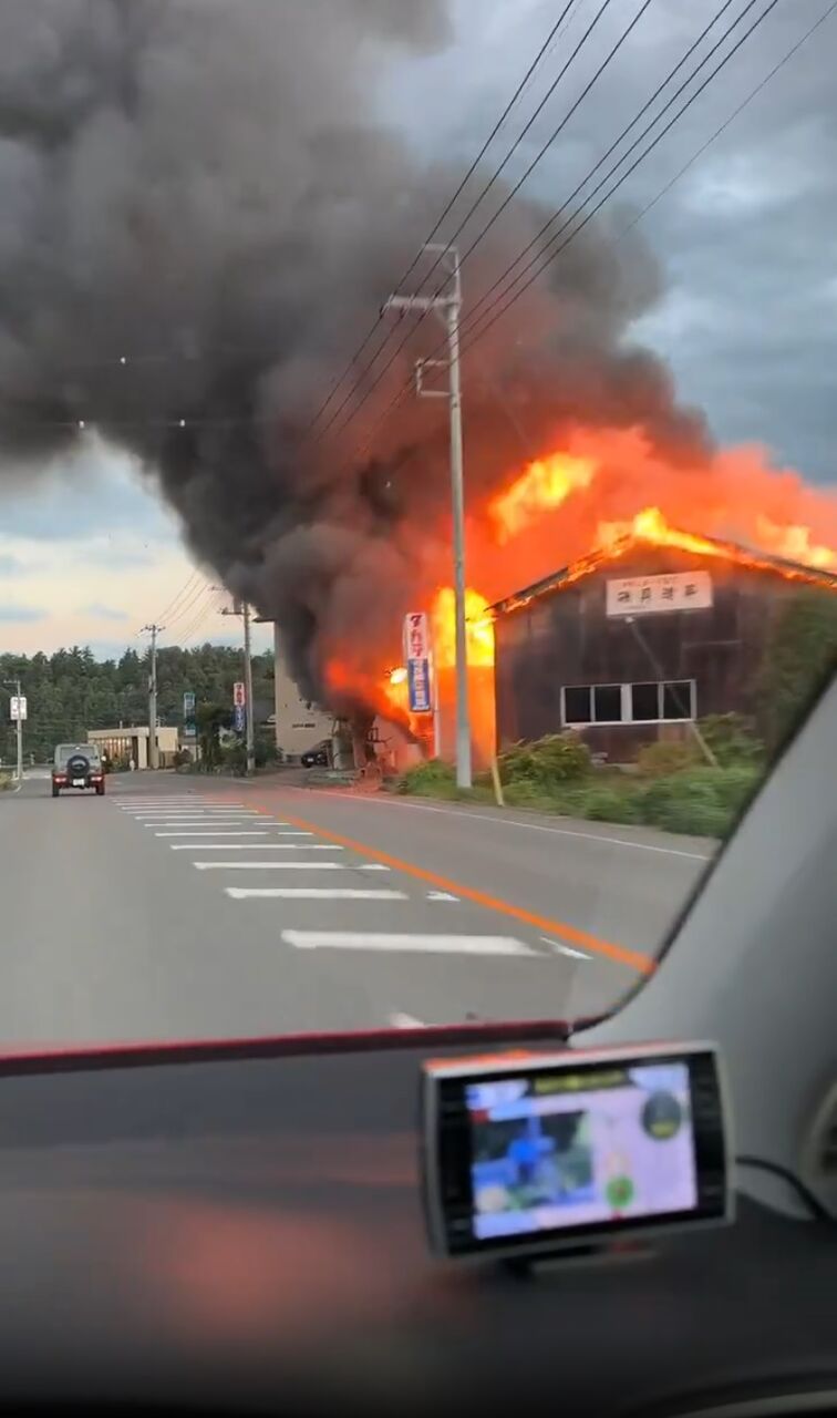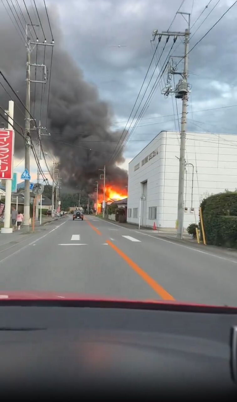 【火事情報】群馬県富岡市宇田 県道47号線沿い セブンイレブン富岡宇田店北側 道路沿い倉庫建物から火の手あがる火災8月11日 #群馬 #富岡 #火災