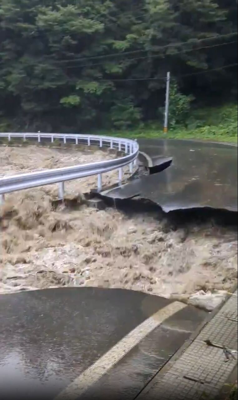 【現場の状況】#交通情報 岩手県下閉伊郡岩泉町岩泉森の越の川沿い道路や岩泉大平鼠入川沿い道路が陥没通行止8月12日 #岩手 #岩泉町 #台風5号 #避難指示