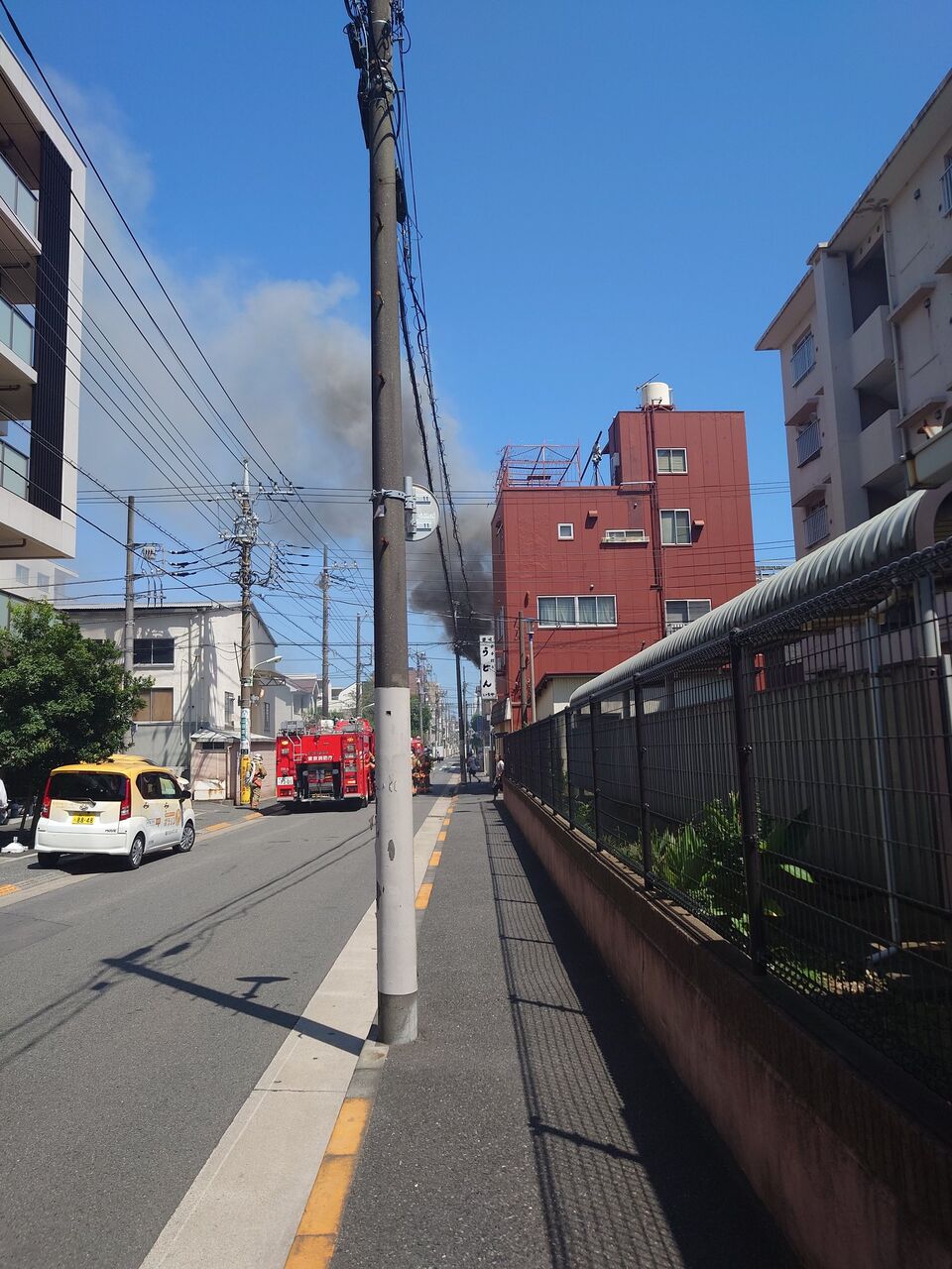 荻中公園プール行ったら近くで火事…めっちゃ消防車来てる!!#大田区 #荻中 #火事 pic.twitter.com/OG6ilVhgbN