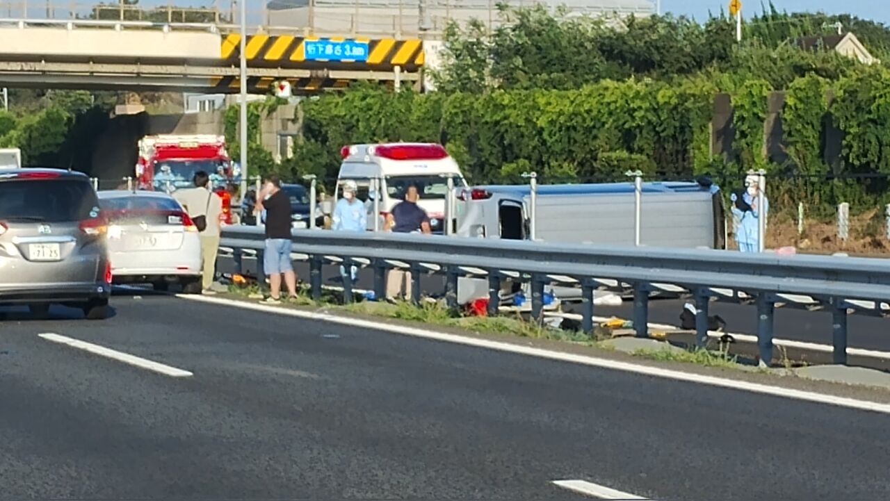 【現場の様子】#交通情報 #東関東道 四街道IC付近 破片散乱する横転事故と追突事故で上下線規制渋滞8月12日 #渋滞 #千葉 #四街道 #お盆休み