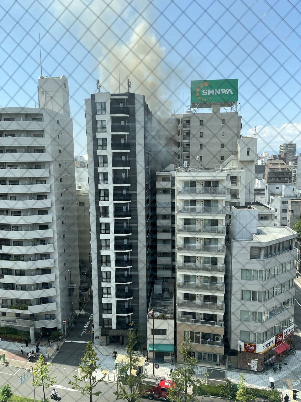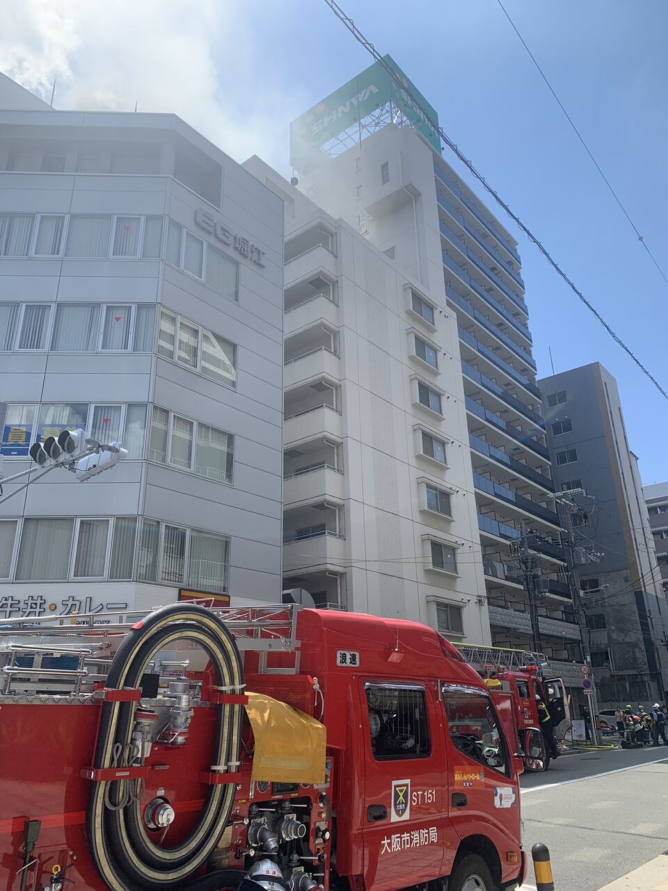 【火事情報】大阪府大阪市西区南堀江2丁目 なにわ筋沿い付近 集合住宅マンション建物から黒煙あがる火災8月13日 #大阪 #堀江 #火災