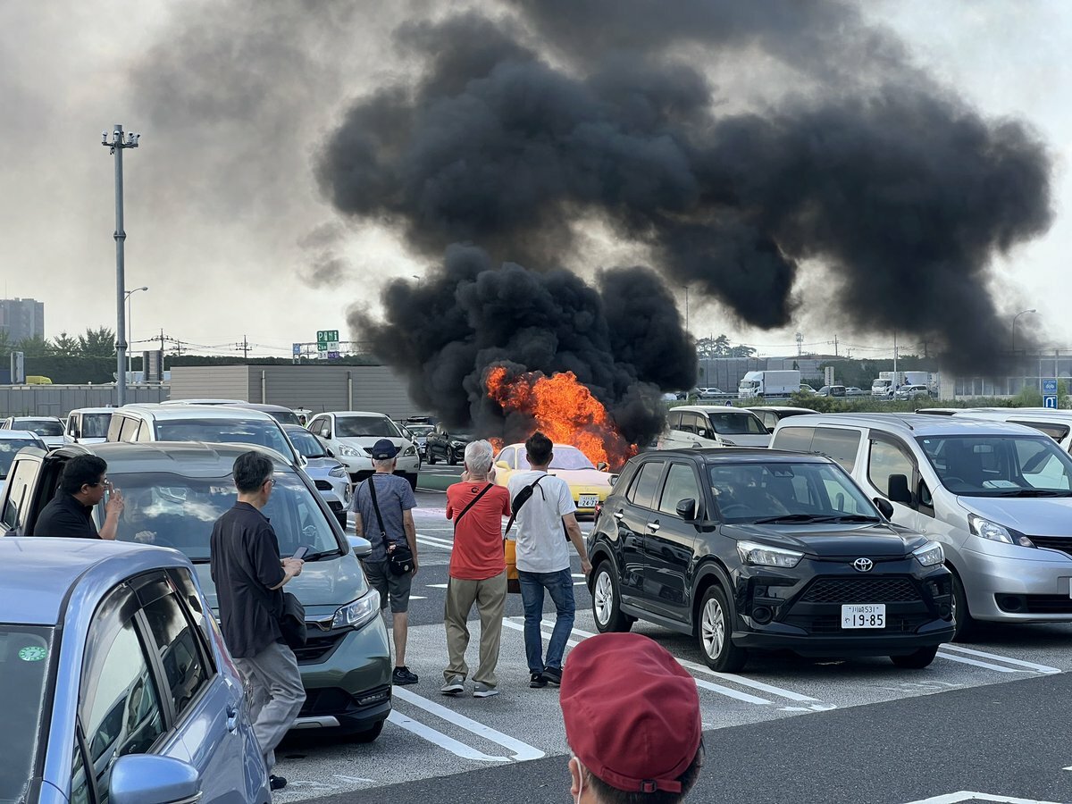 『蓮田SA、車爆発して燃えとるが』