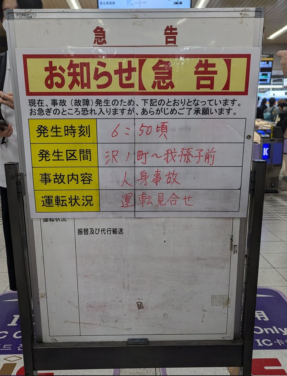 人身事故だそうです。 pic.twitter.com/9FBznuXfbo— ムータン JG6SNG/3 (@XQCc8kgIuRlkT00) August 20, 2024