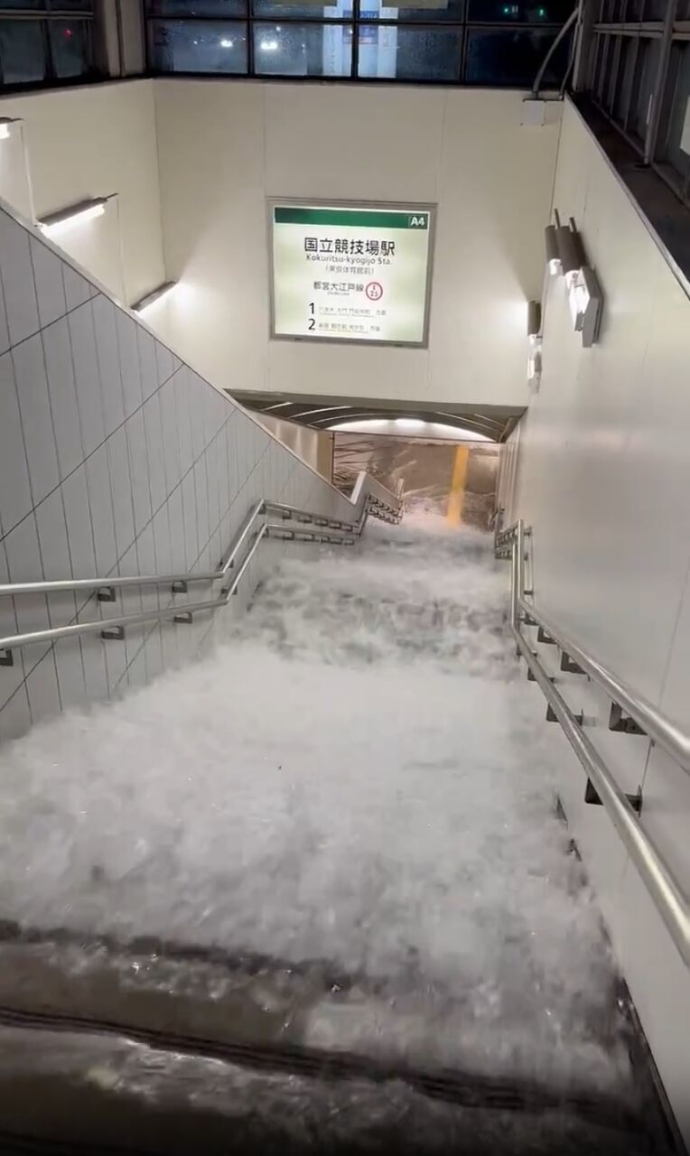 『大江戸線の国立競技場駅はゲリラ豪雨の影響で一部の出入り口が封鎖しています。』