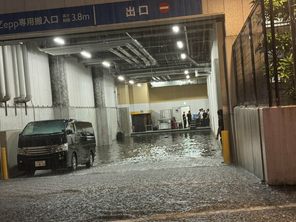 【現場の状況】#ゲリラ豪雨 『客席に雨水が来る可能性』Zepp DiverCity (TOKYO)搬入口から浸水で入場一時停止8月21日 #お台場 #Zepp #SCANDAL