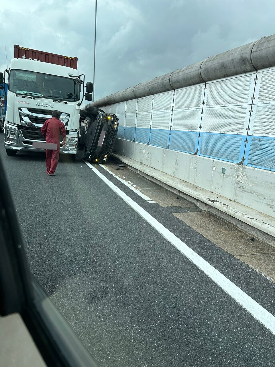 『大宮へ行く際、反対側で事故を見たけど、大型車と壁で乗用車が挟まれていて、その車は横転状態だった』