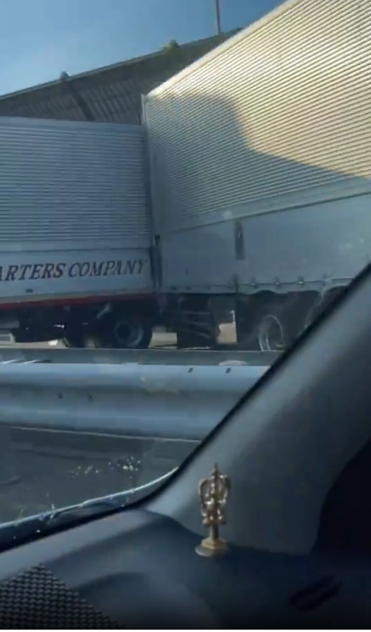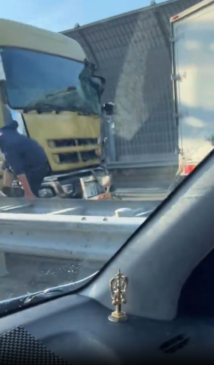 『事故トラック4台二車線封鎖になってる!』