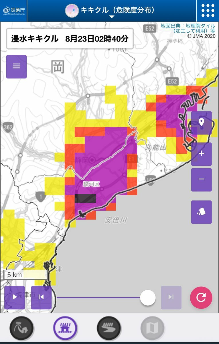 浸水害が切迫しています駿河区ではキキクルの黒が出現#静岡 #大雨 pic.twitter.com/b45I47z0bn