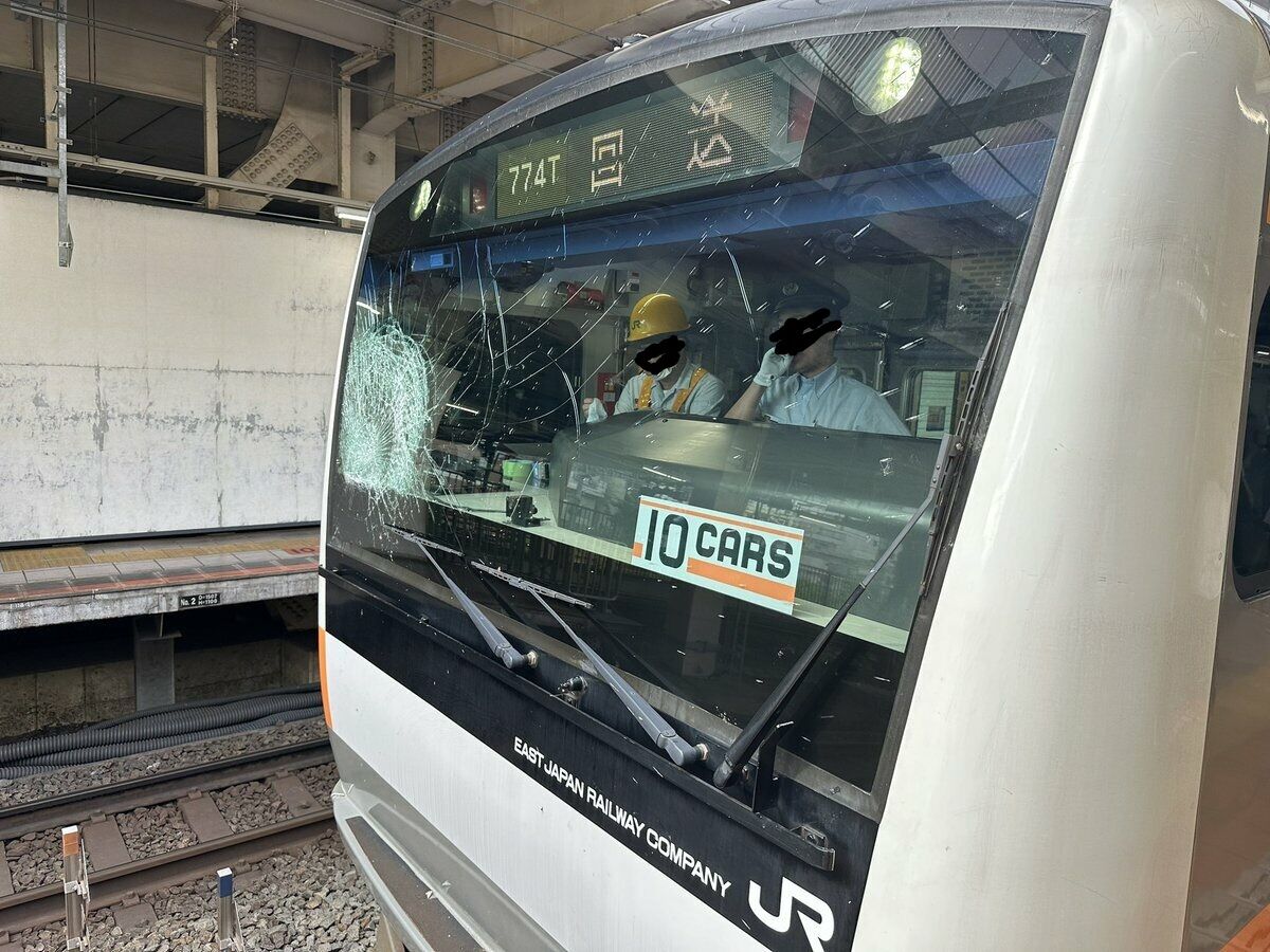 中央線快速電車は、走行中に鳥と衝突、窓ガラスを破損したため、安全確認の上、走行を再開しています。しばらくお待ちください #ダイヤ乱れ #中央線 #中央線快速電車