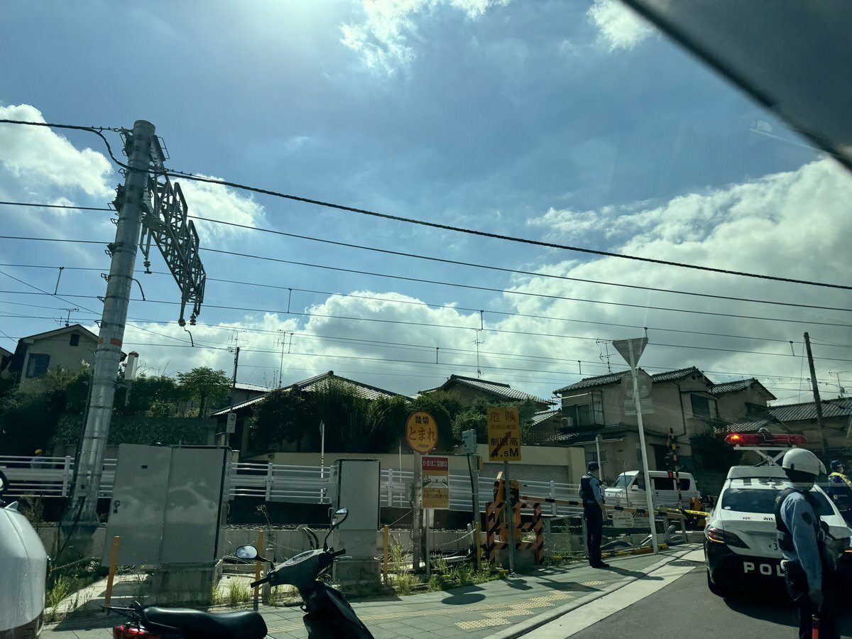 【現場の状況】『踏切内にトラック止まって遮断棒折れてる』#奈良線 JR藤森〜桃山駅で踏切支障により運転見合わせ遅延8月23日 #奈良 #京都 #JR西日本