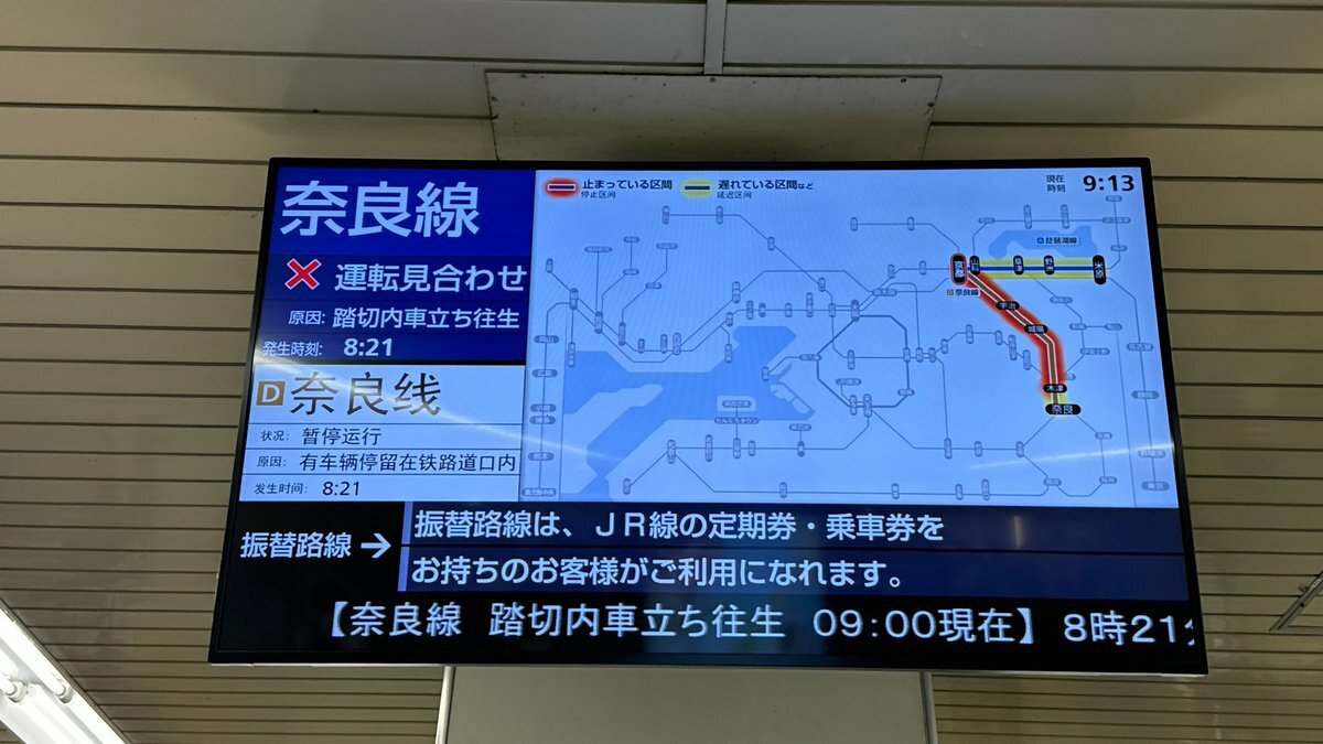 — JR西日本列車運行情報(奈良線)【公式】 (@jrwest_kinki_d) August 22, 2024