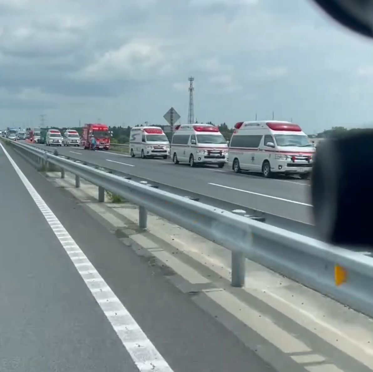 【現場の様子】#交通情報 #圏央道 内回り 境古河IC付近 救急車レスキュー多数出動する衝突事故で規制渋滞8月23日 #渋滞 #茨城