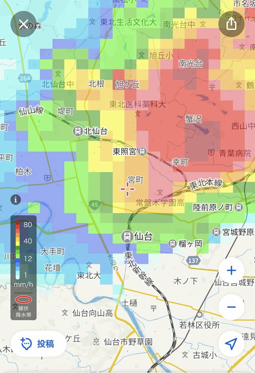 【大雨警報】宮城県・仙台市東部、仙台市西部に発表 https://t.co/UV3KBHaURP