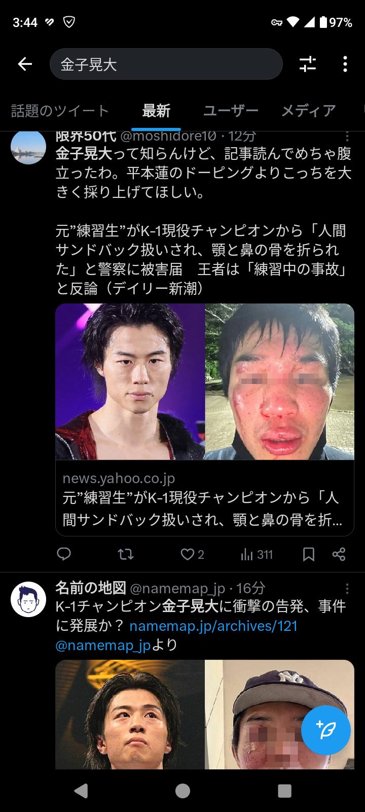 ■ K-1王者金子晃大が練習中に元アマチュア選手を暴行し、鼻と顎を骨折させたと警察に訴えられた。