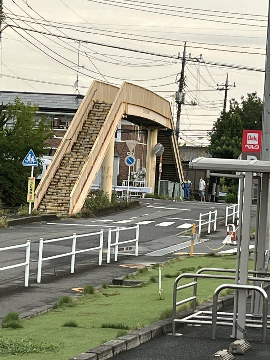 【現場の様子】#交通情報 県道128号線 埼玉県行田市城西4丁目ベルク付近 歩道橋から転落した人と自動車の衝突事故で一時通行止め渋滞8月25日 #渋滞 #通行止 #埼玉 #行田