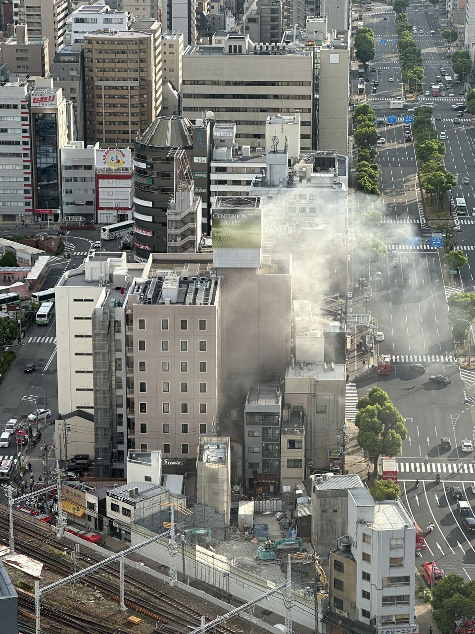 神戸駅北側のホテルか龍ちゃんらへんから白い煙止まらん