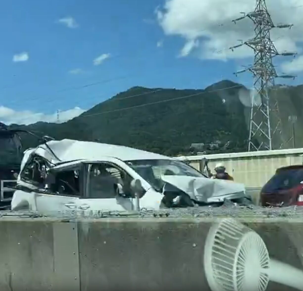 湖西道路、坂本北IC付近事故発生中、怪我人がなければいいのですが・・・。 pic.twitter.com/z11GiF0gnn