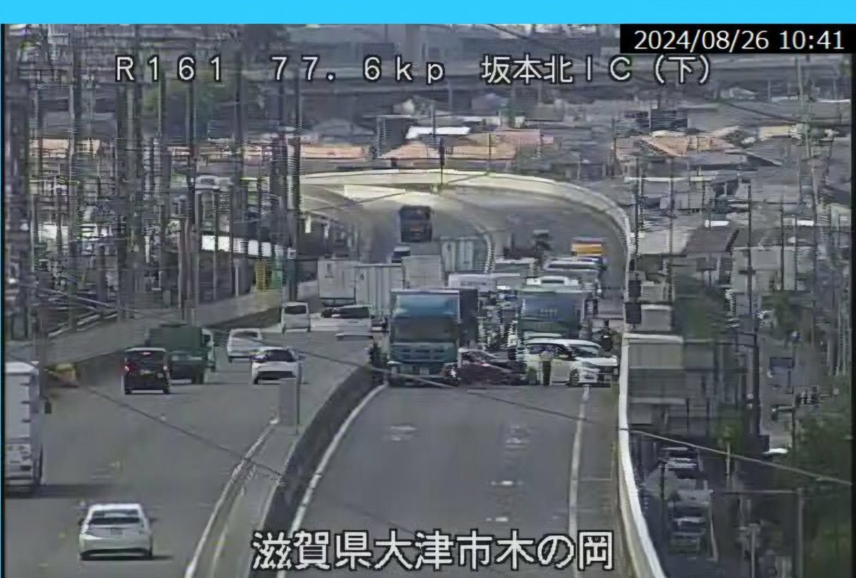 【現場の様子】#交通情報 #国道161号 #湖西道路 上り 坂本北IC付近 車線塞ぐトラック乗用車複数台絡む衝突事故で通行止め渋滞8月26日 #渋滞 #通行止 #滋賀 #大津 #京都
