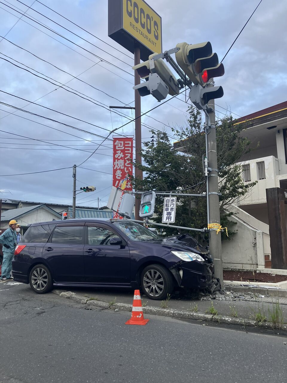 三沢のマックの交差点でYナンバー信号機に突っ込んでる