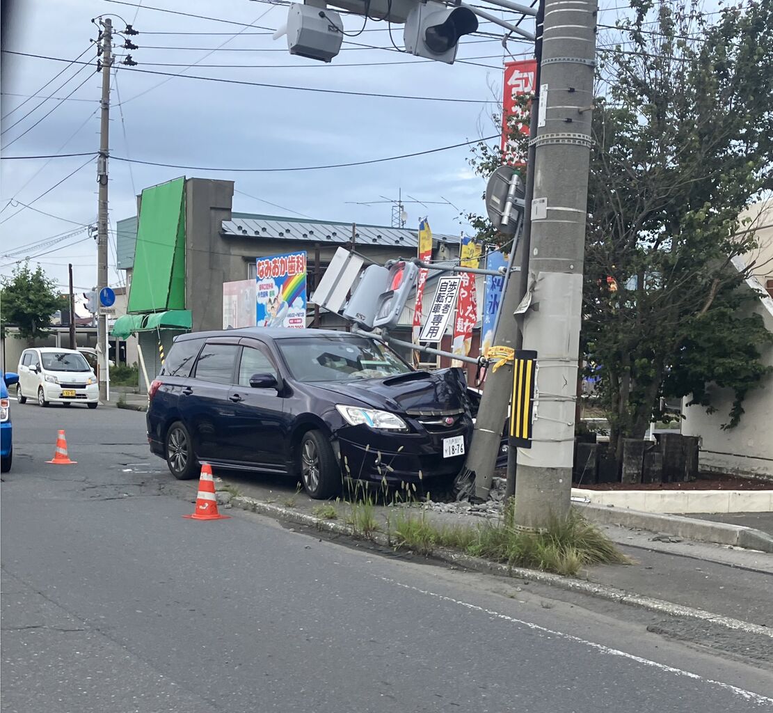 『三沢のマックの交差点でYナンバー信号機に突っ込んでる』