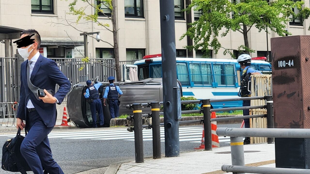 国会の前で車が倒れてるがな…#事故 #国会 pic.twitter.com/KTSWoCD72M