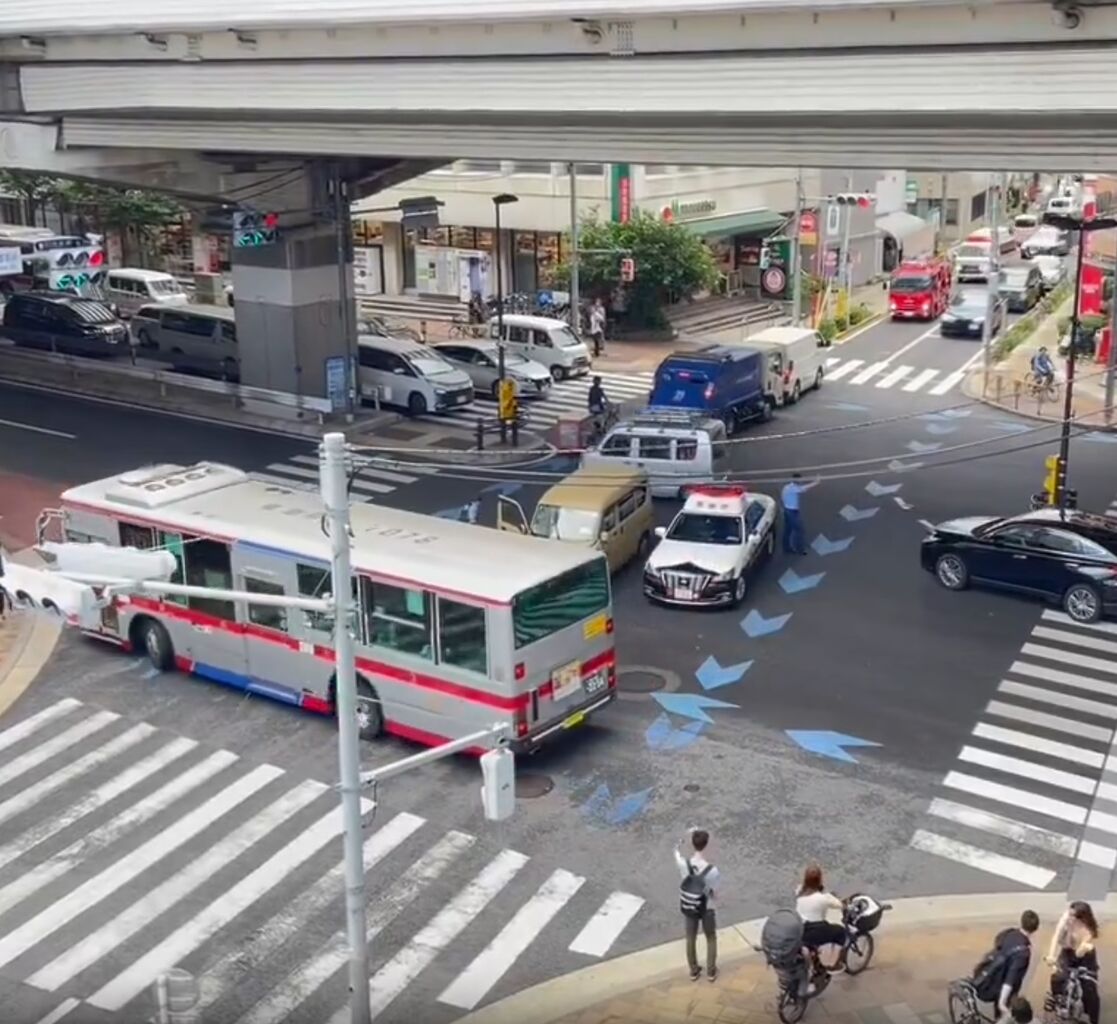 【現場の様子】#交通情報 #国道246号 下り 東京都世田谷区世田谷郵便局付近 交差点ど真ん中 衝突事故で規制渋滞8月27日 #渋滞 #世田谷 #三軒茶屋