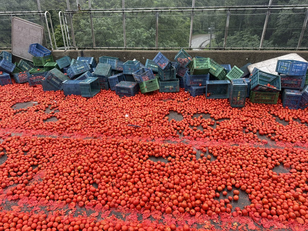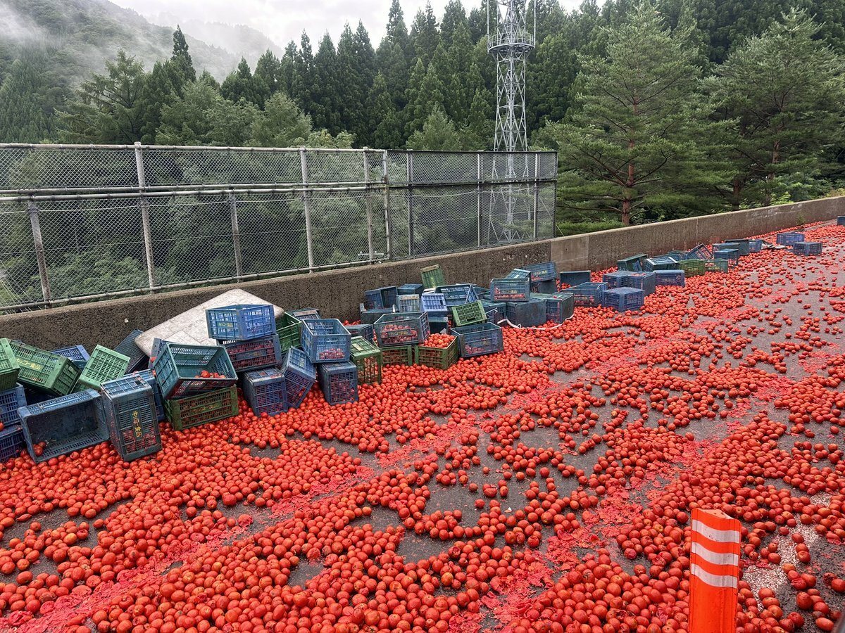 高速上にトマト散乱🍅 pic.twitter.com/71khwMIGbP
