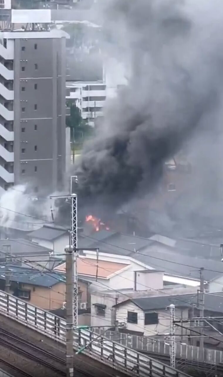 【火事情報】福岡県北九州市小倉北区砂津3丁目8番 チャチャタウン東側 山陽新幹線 鹿児島本線線路付近 建物から黒煙あがる火災8月28日 #福岡 #北九州 #火災