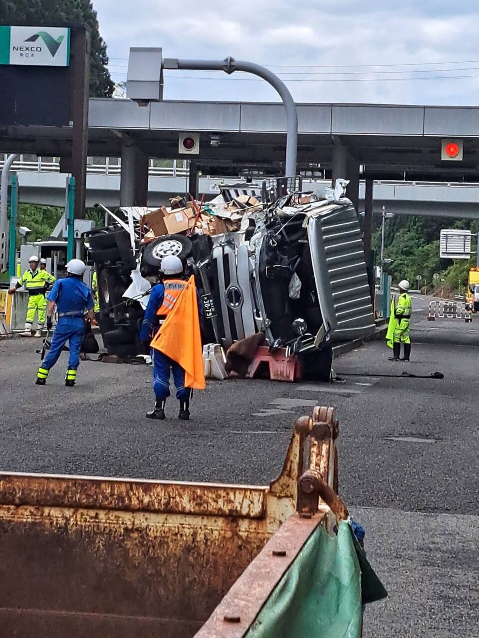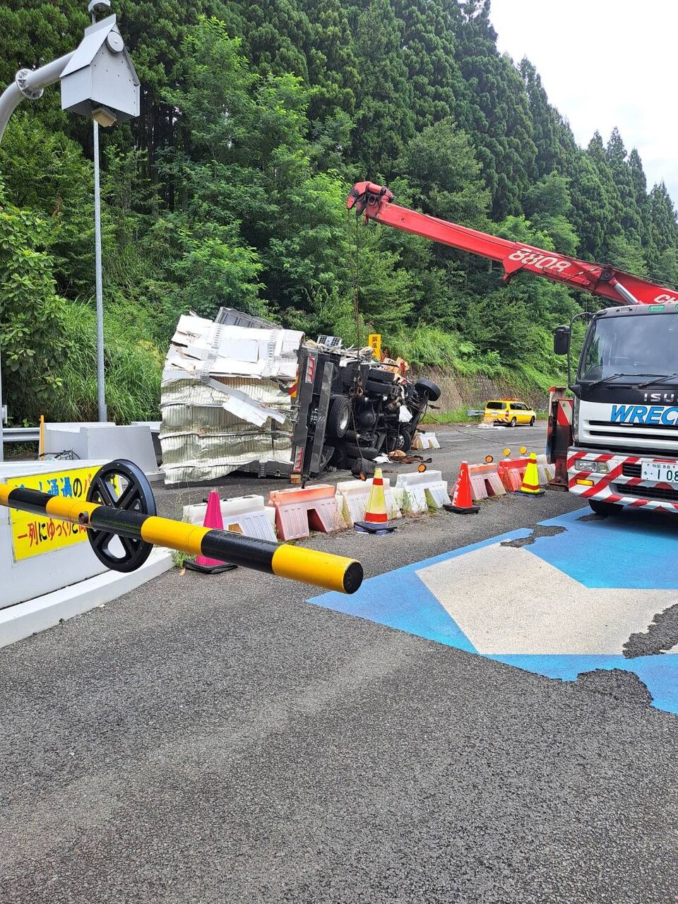 秋田空港IC料金所にトラック突っ込み横転 岩城―秋田空港の下り線通行止め https://t.co/WDLaxCd2nX