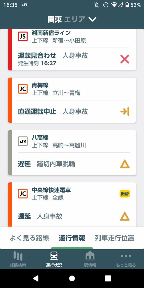 藤沢駅で人身事故だって!大変だ!