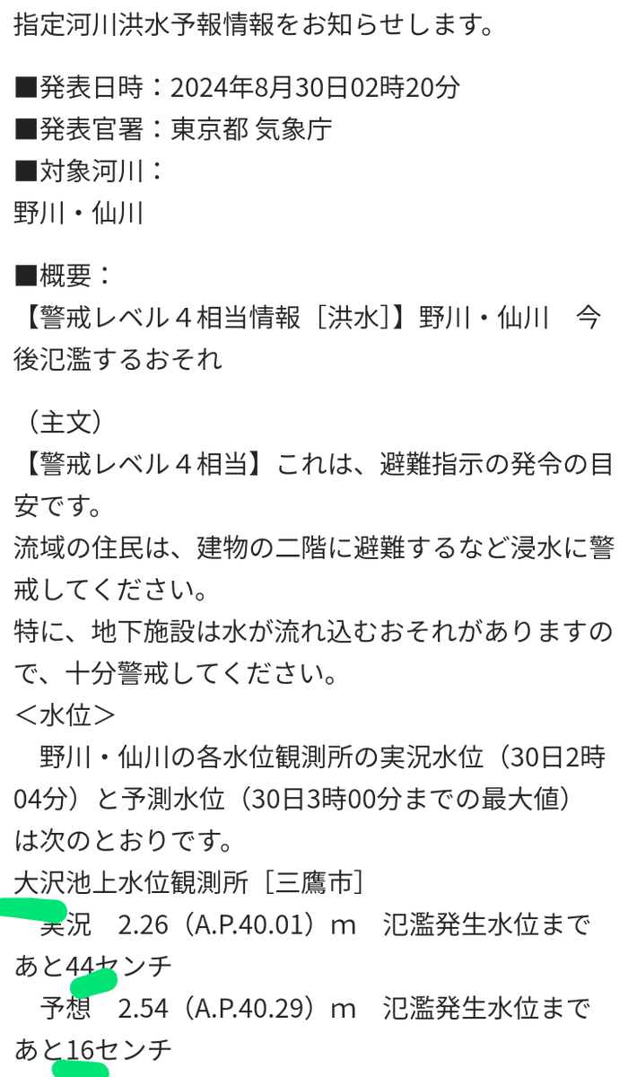 気象情報等をこまめに確認してください。— 狛江市 (@KomaeCity) August 30, 2024