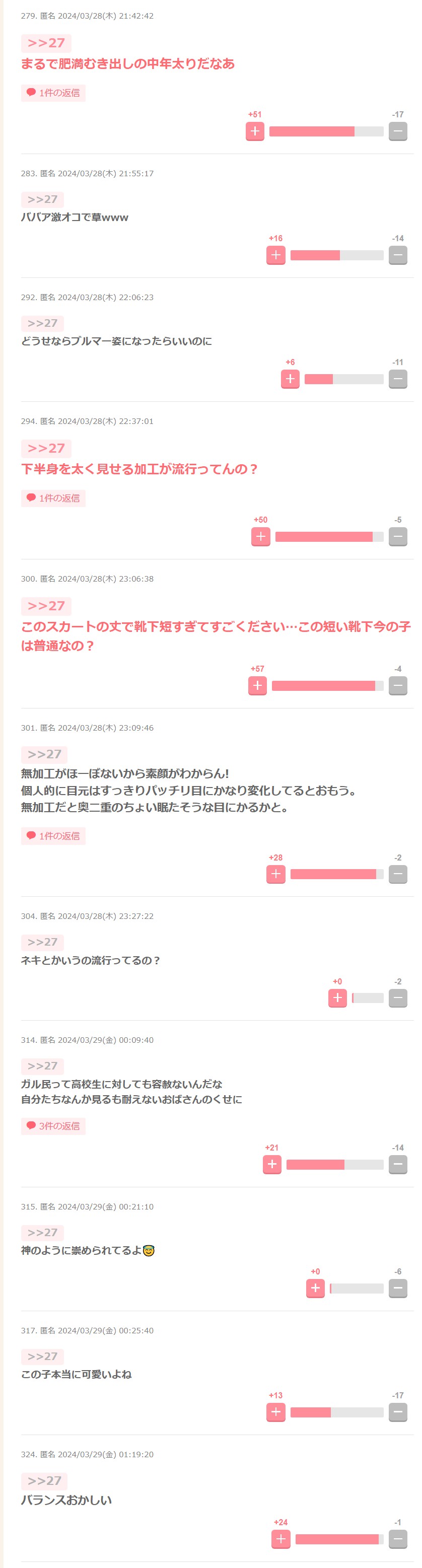 【悲報】セクシー美人女子高生(15)さん、おばさん達に叩かれてしまう… 2024/8/30 速報 1: document.write(” + ”); 関連記事 document.write(” + ”); 続きを読む ——— Source: アルファルファモザイク 【悲報】セクシー美人女子高生(15)さん、おばさん達に叩かれてしまう…