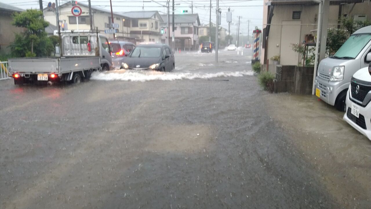 冠水もあちこちでおきてます!運転されるかたお気をつくけください。#ゲリラ豪雨#大雨