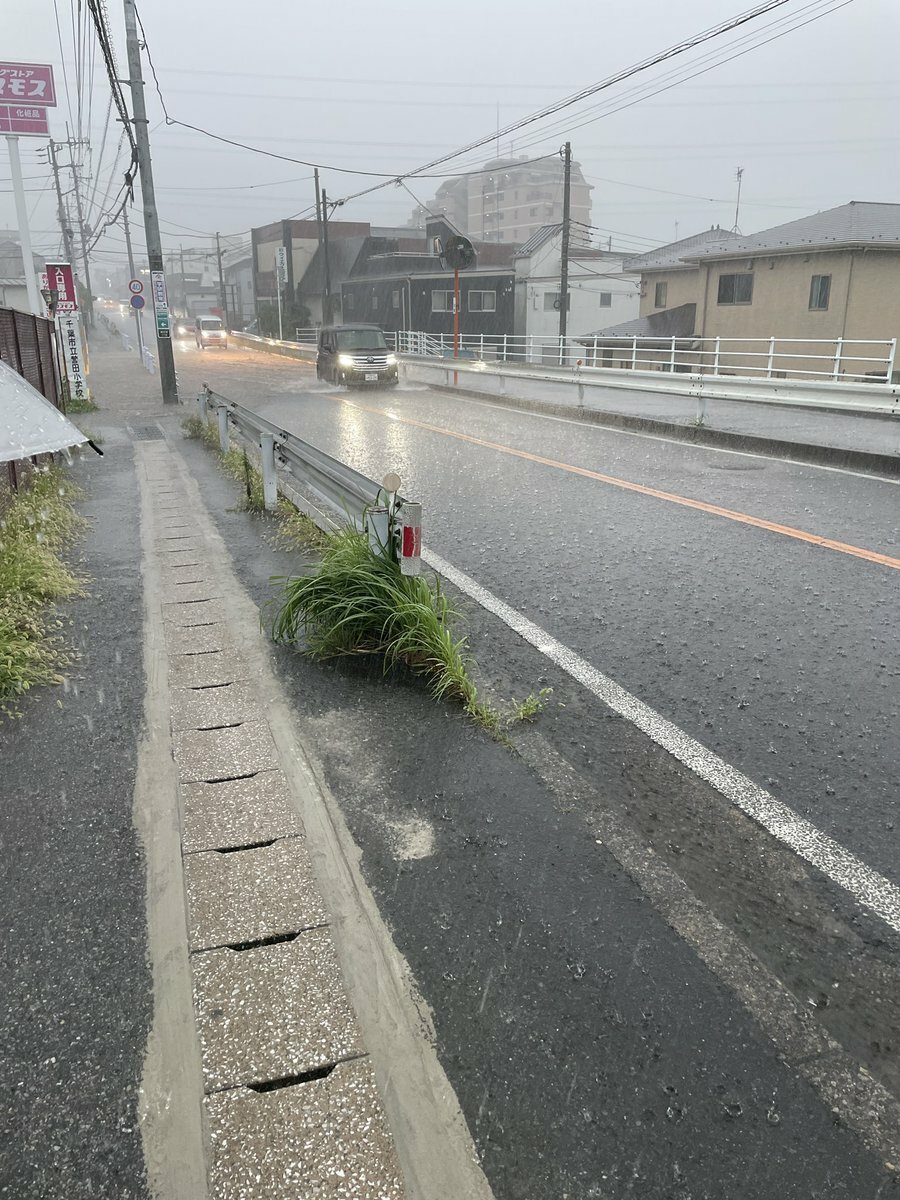 『誉田駅前周辺が冠水してまして、大網街道は渋滞しています。誉田東小学校前も消防も出てきて通行止めもあります。』
