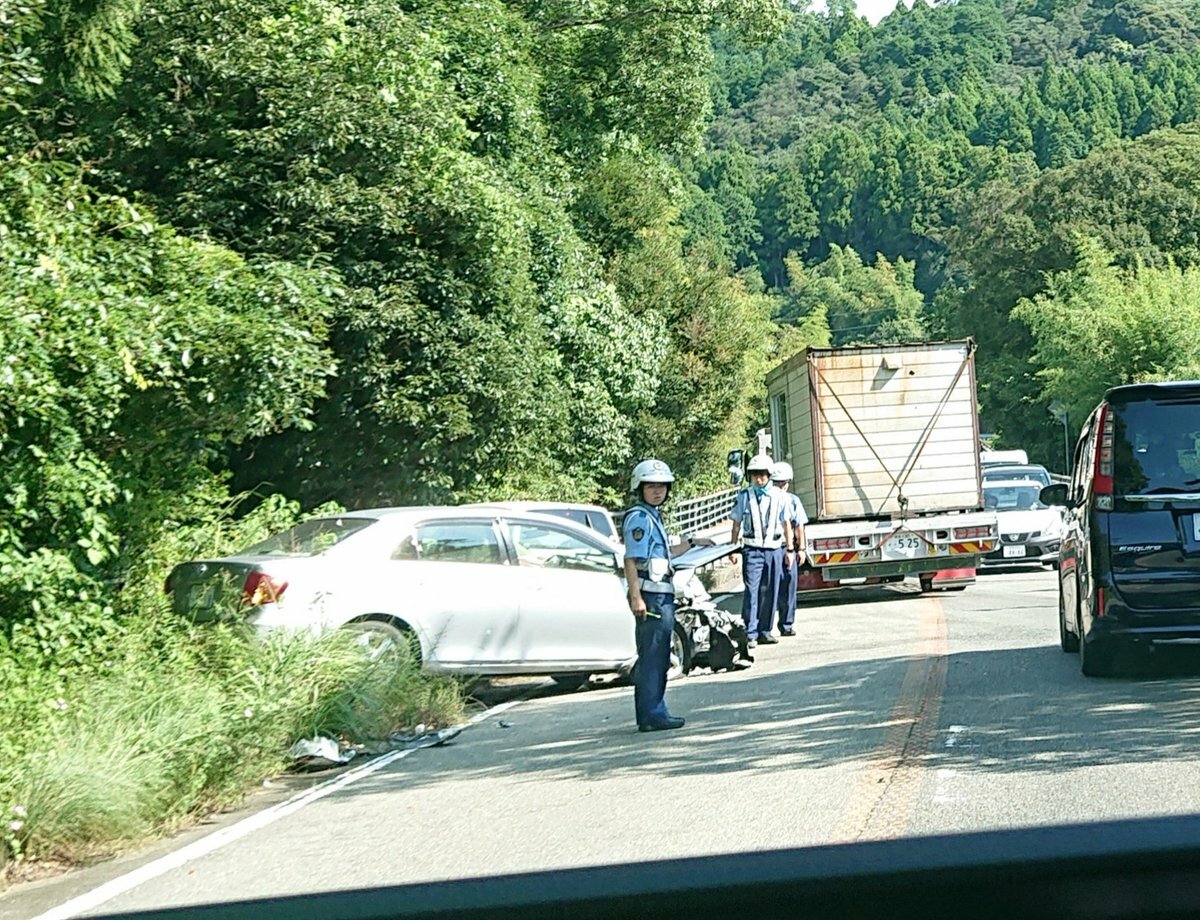 【現場の様子】#交通情報 #国道55号 徳島県海部郡牟岐町辺川駅付近 フロント大破する衝突事故で規制渋滞9月5日 #渋滞 #徳島