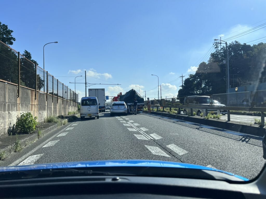 プリウスが平ボデーに刺さってるー#事故 #渋滞情報— 幸來めだか (@kouraimedaka) September 8, 2024