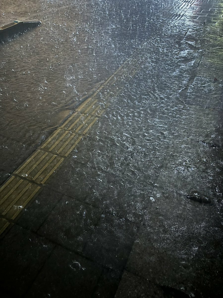 土砂降りだし、水溜りが流れてるし、付近は冠水してるし。