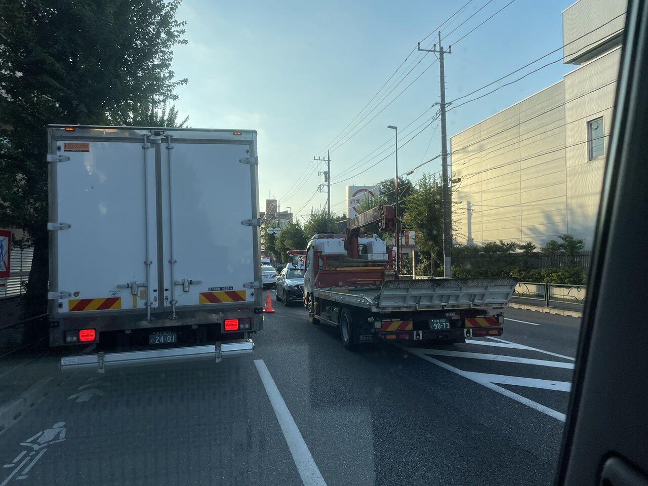 【現場の様子】#交通情報 #新青梅街道 下り 東京都西東京市けやき小学校スシローニトリロピア付近 車線塞ぐ事故で規制渋滞9月13日 #渋滞 #西東京市 #田無