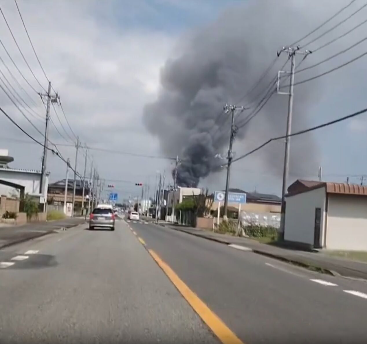 東海村の火事?真崎十字路から久慈川方面へちょっと北上したところらしい