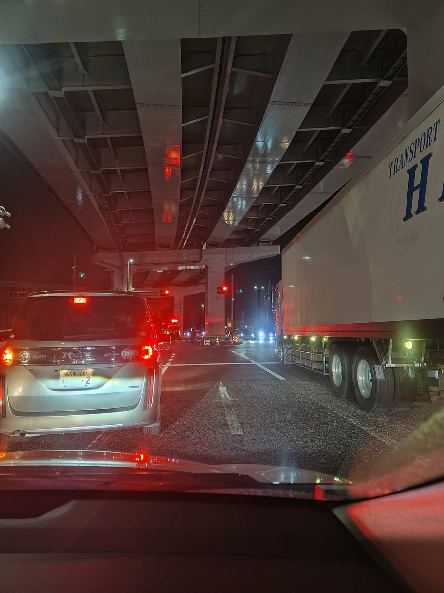 京奈和の郡山出口でトラックが道塞いでて鬼混んどる…マルハンの真ん前やから、皆んなそこの交差点で強制左折してる