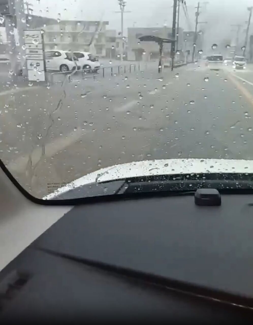 『凄い雨と雷☔⚡️南町辺りの道路冠水が怖くてちょっと避難😓💦皆様お気をつけて⚠️』